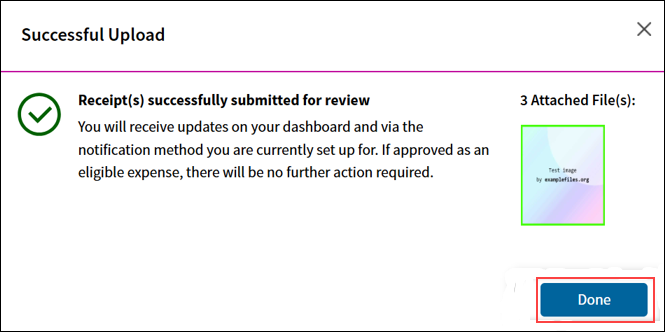 7. A Successful Upload window will appear, verifying that the files were successfully submitted for review. Select Done.